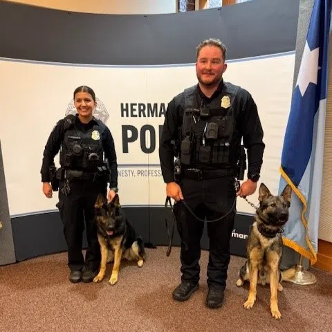 K-9 Bruno is partnered with Hermantown Police Officer Olivia Gottschald and K-9 Kylo is teamed up with Hermantown officer Lucas Hedin.